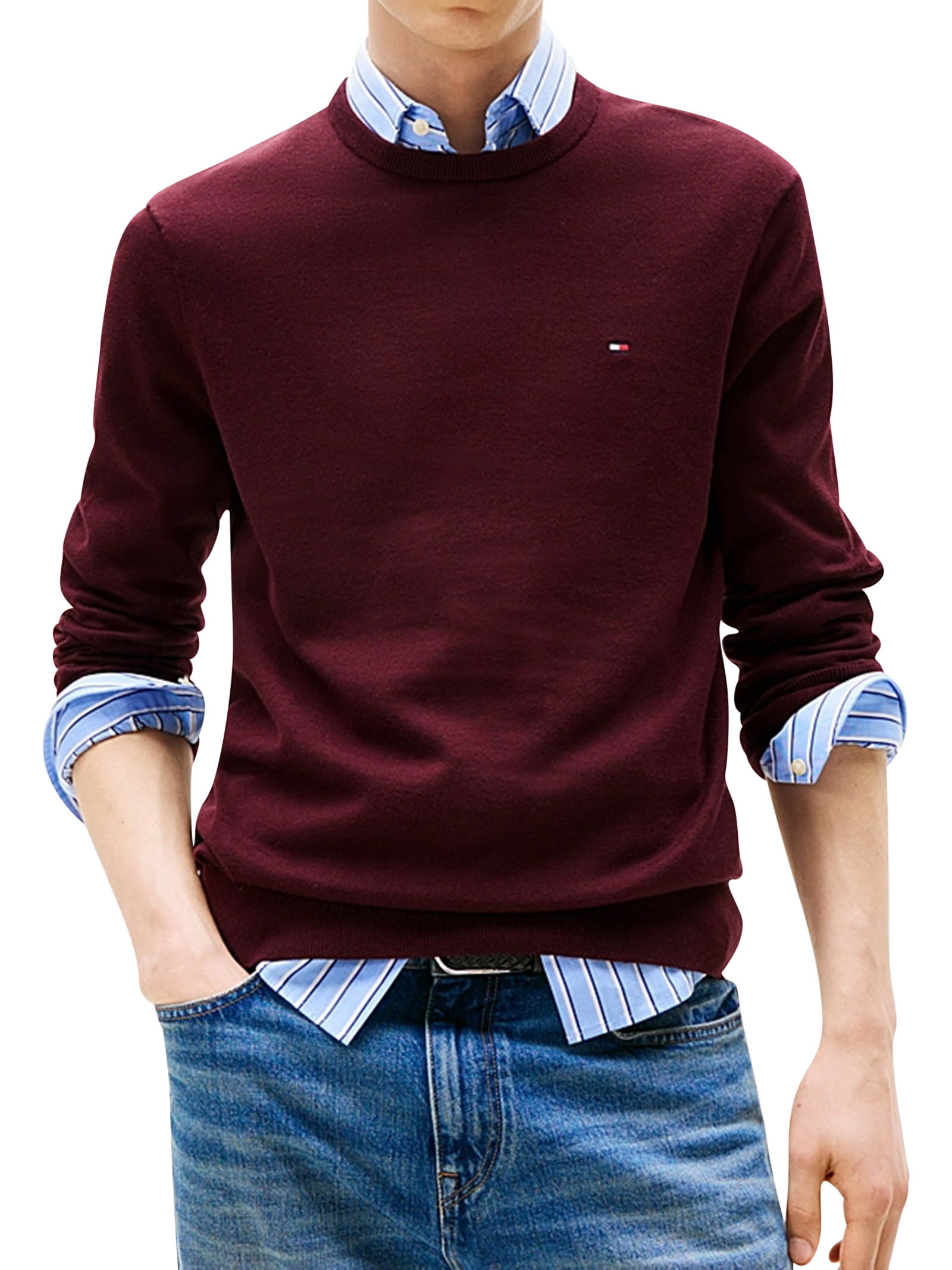 Pullover uomo Tommy HilfigerModello: girocolloMateriale: 100% cotoneColore: bordeaux