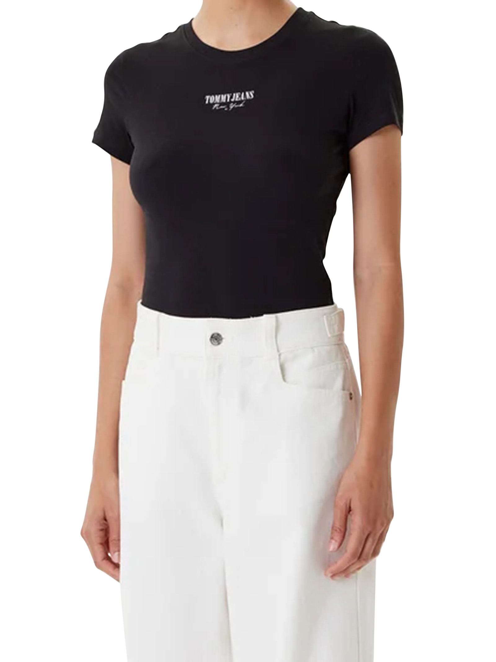 T-shirt donna Tommy HilfigerModello: girocolloMateriale: 70% cotone, 30% viscosaColore: nero