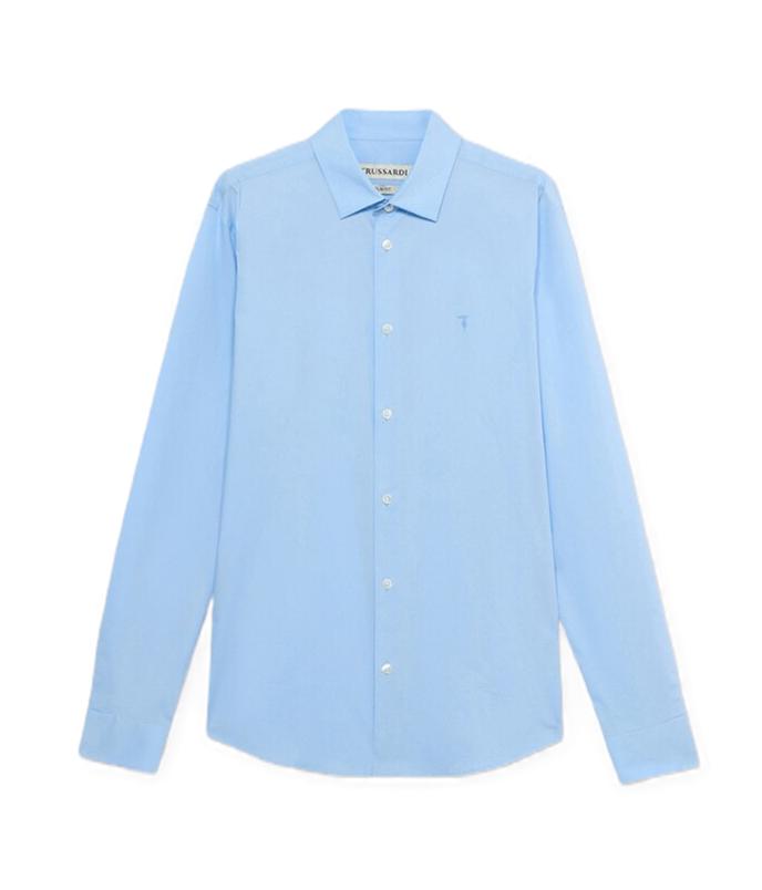 Camicia uomo Trussardi Modello: regular fit con logo ricamato Materiale: 97% cotone 3% elastan Colore: celeste