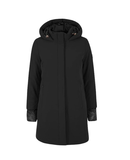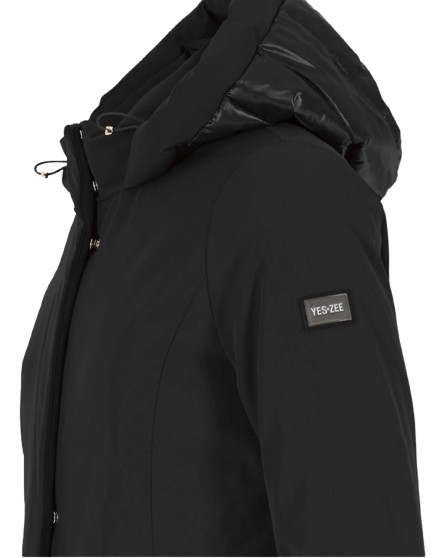 Giubbino donna Yes Zee Modello: lungo Materiale: 88% nylon, 12% elastan Colore: nero.