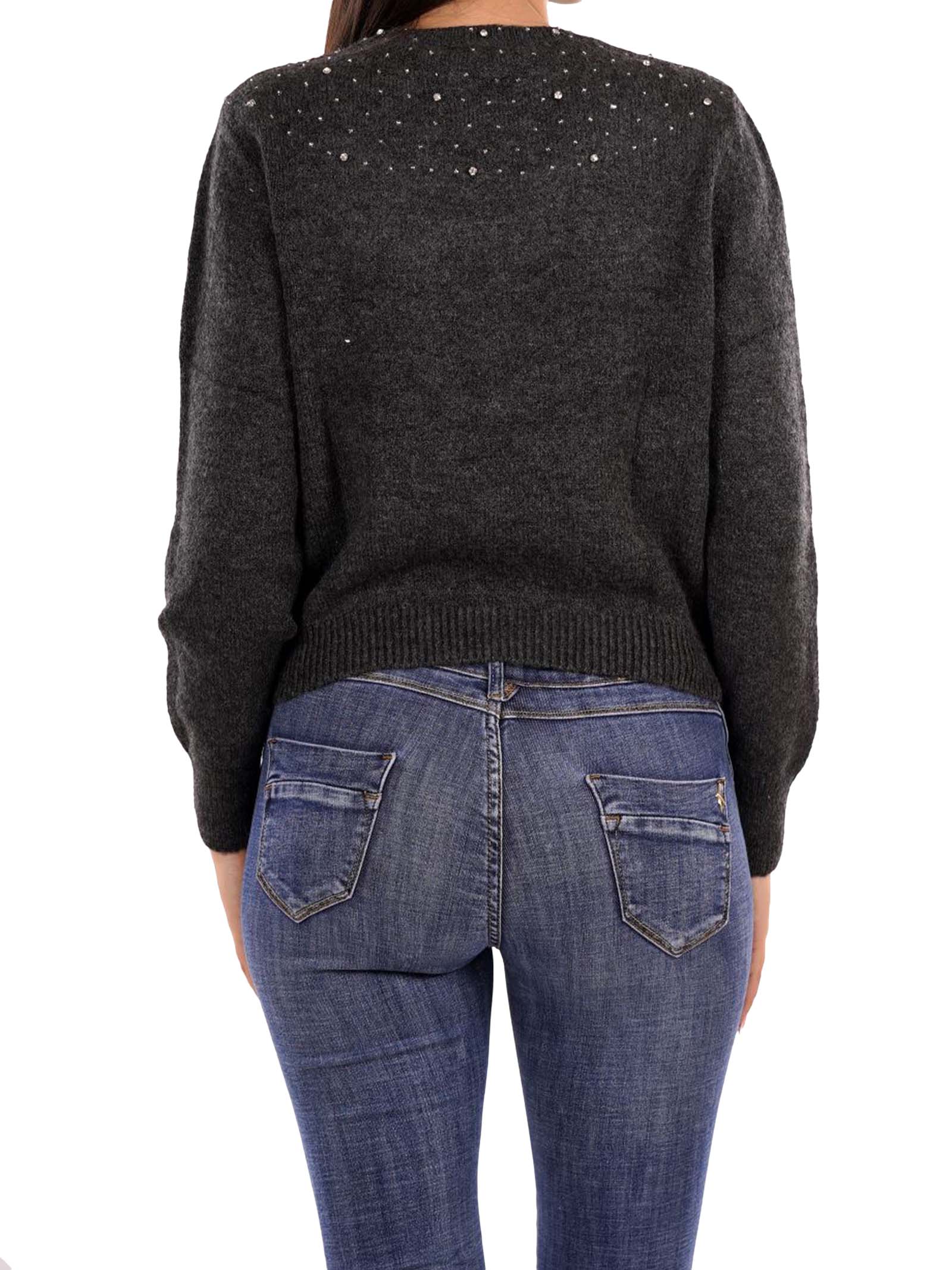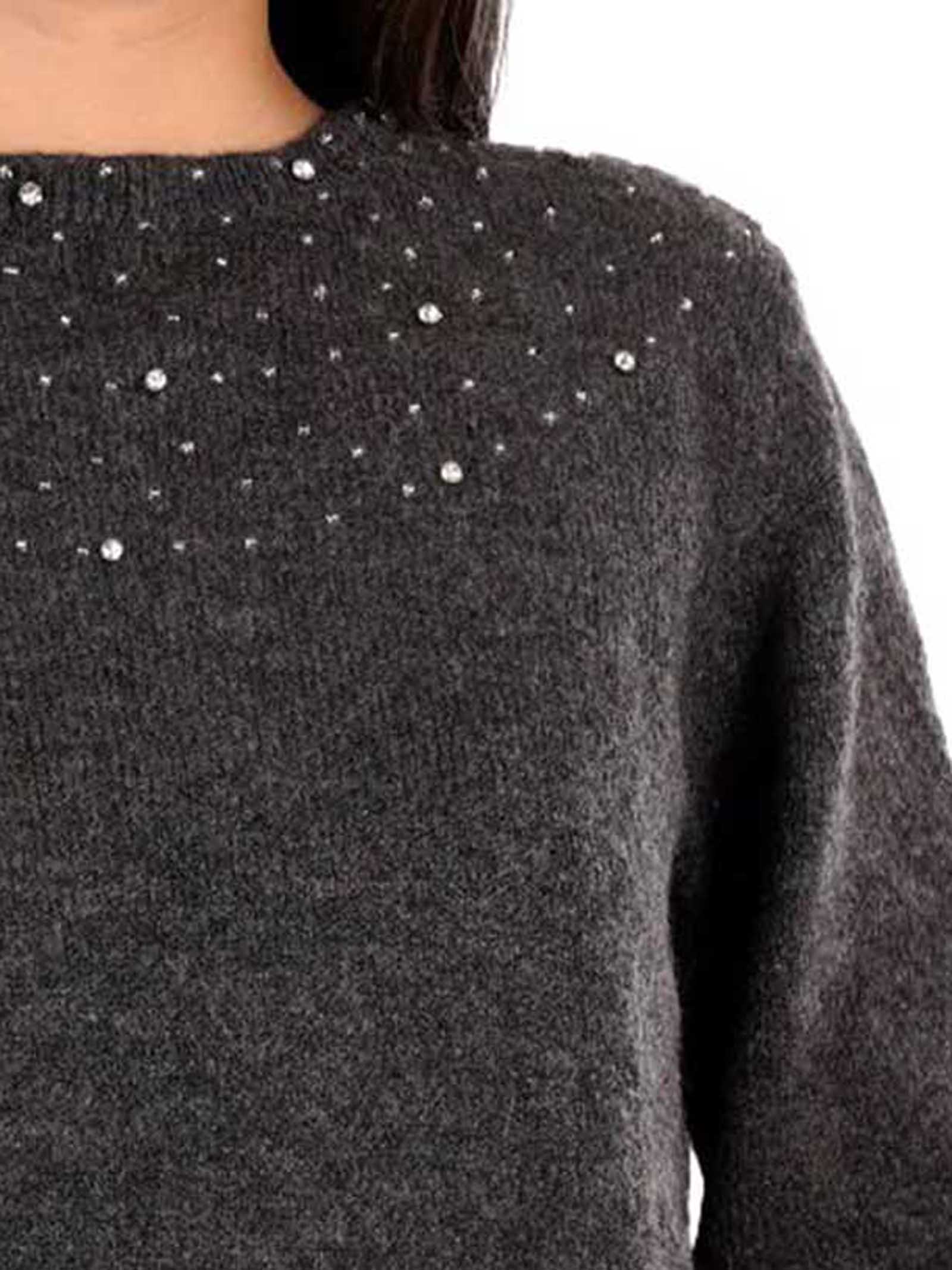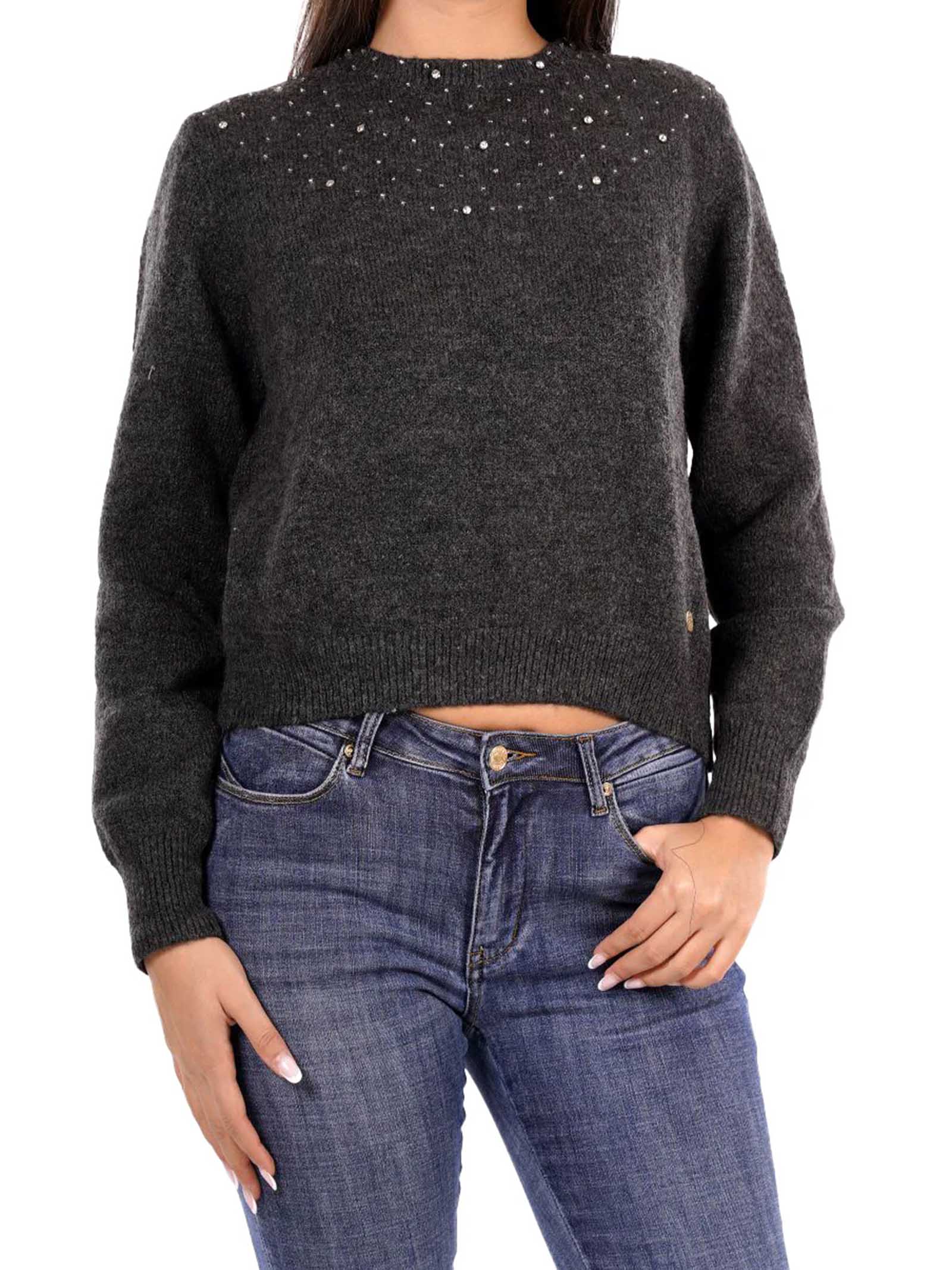 Maglia donna Yes ZeeModello: girocolloMateriale: 60% Acrilico, 24% Poliestere, 6% Lana, 5% Lurex, 5% altre fibreColore: grigio